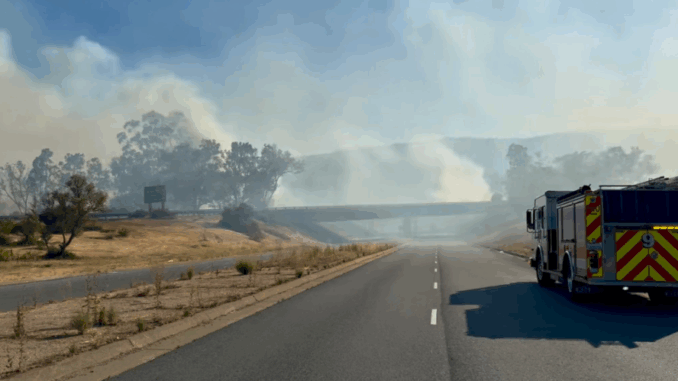 8 p.m., Saturday, Aug. 30 — A car fire on Interstate 280 near Canada College ignited a 10-acre vegetation on both sides of the freeway this afternoon (Aug. 30), according to CalFire’s CZU San Mateo-Santa Cruz Unit.