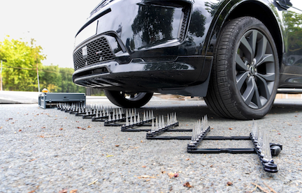 A driver who got flat tires after Menlo Park Police left a spike strip out is now asking the city to pay for his new wheels.